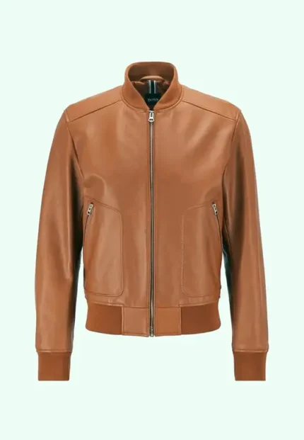 Men`s Tan Lambskin Leather Bomber Jackets