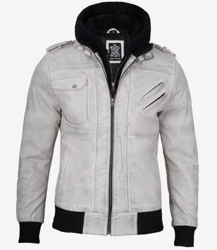 Men`s Off White Hooded Leather Jackets