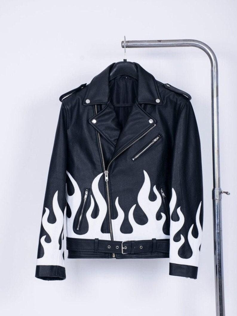 White Flame Leather Jacket for Men